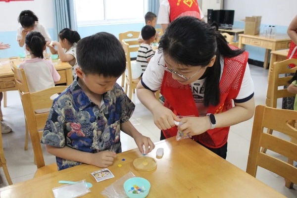 活动“规范又贴心”,筑牢安全成长防线。为确保活动有序开展,关镇村党委采用“三段式”标准化流程,让每一场活动都既高效又安心。前期筹备“细之又细”,组建“小导师+志愿者”服务团队,针对不同主题定制安全实用的材料包,反复打磨活动流程,全面排查安全隐患,为活动开展“筑牢根基”;活动过程“稳之又稳”,按照“知识讲解—分步教学—自由创作—成果展示”四个环节稳步推进,小导师根据年龄分组指导,耐心细致地帮助低龄儿童完成作品,让每个孩子都能体验成功的喜悦,为活动开展“护航引路”;活动后期“实之又实”,通过问卷调查收集家长与孩子的意见建议,动态调整课程难度,还特别设立“作品展示墙”,将孩子们的创意成果一一陈列,留存下珍贵的快乐瞬间。