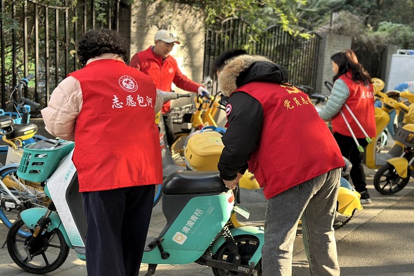 亮明身份显担当。振杰网格党委以“党员志愿服务”为抓手,通过组建“党员先锋队”、划分“党员责任区”,推动广大党员从会议室走向小区楼栋、融入民生服务。在环境整治、矛盾调解等领域,党员志愿者常态化开展小区环境提升行动,定期清理楼道堆积物、规范非机动车停放,有效改善人居环境。在服务群众健康方面,依托“滨湖世纪社区健康共同体”便民取药点,党员志愿者主动协助老年人完成取药流程并提供上门送药服务,今年以来累计服务居民超过600人次,切实将便利与关怀送到居民身边,彰显了共产党员的为民本色与责任担当。