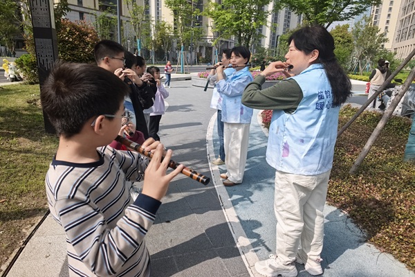聚焦民生需求,提升基层服务质效。社区党委坚持以群众需求为导向,推动服务资源下沉,精准解决群众急难愁盼问题。打造“盛笛传音”“同心健康”“‘杏’福领航”等党建品牌,常态化开展“杏福驿站”便民服务日32次,围绕“花儿与少年”项目开展传统文化传承、民族乐器教学等活动60场,丰富居民精神文化生活。聚焦“一老一小”重点群体,整合辖区志愿服务力量,为老年人提供健康义诊、慢性病咨询、居家安全指导等服务110次,切实提升特殊群体的获得感与幸福感。同时,统筹推进便民设施建设与更新,依托网格走访、议事协商收集居民诉求,及时解决小区路灯维修、健身器材更换、垃圾分类点位优化等问题,让基层治理更有温度、更贴民心。